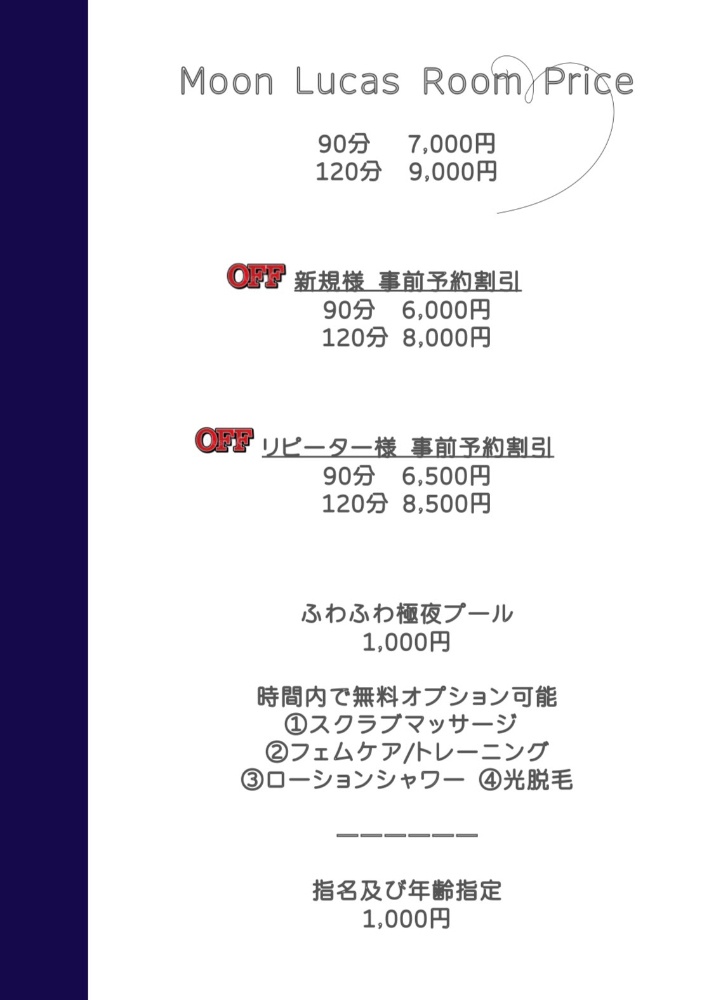 技術、年齢や容姿などもご指定される場合は指名(指定)料1000円を頂いております。